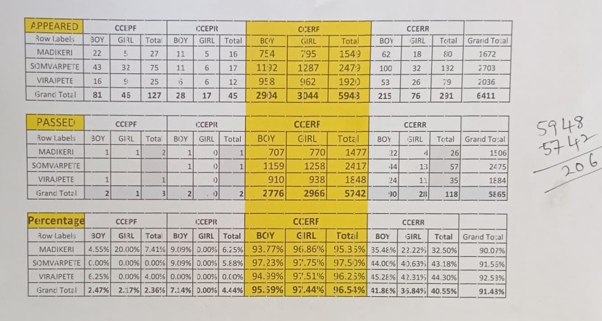 ಎಸ್.ಎಸ್.ಎಲ್.ಸಿ ಪರೀಕ್ಷಾ ಫಲಿತಾಂಶ ಪ್ರಕಟ;ಕೊಡಗು ಜಿಲ್ಲೆಯ ತಾಲ್ಲೂಕುವಾರು ಫಲಿತಾಂಶ ಇಲ್ಲಿದೆ ನೋಡಿ