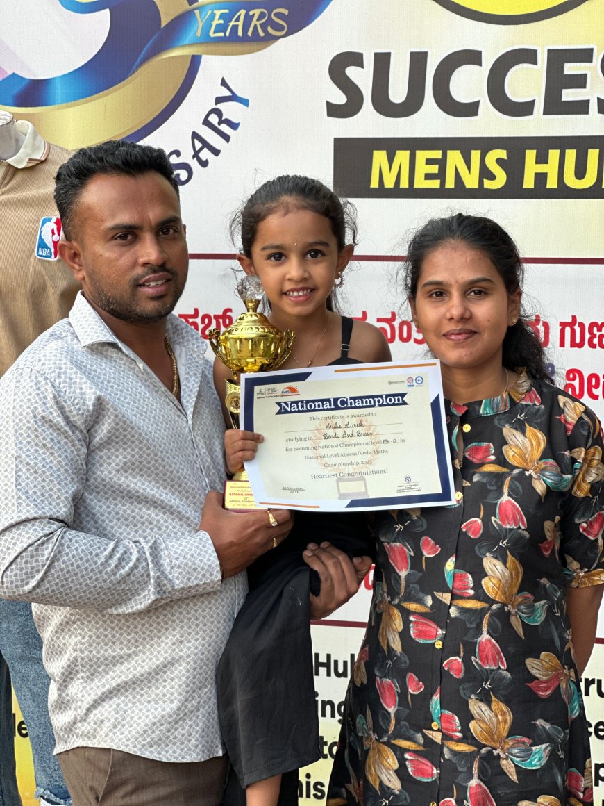 ರಾಷ್ಟ್ರೀಯ ಮಟ್ಟದ ಅಬ್ಯಾಕಸ್ ಮತ್ತು ವೇದ ಗಣಿತ ಚಾಂಪಿಯನ್ಶಿಪ್ನಲ್ಲಿ ಕೊಡಗು ಜಿಲ್ಲೆಗೆ ಕೀರ್ತಿ ತಂದ ಪುಟ್ಟ ಬಾಲೆ ವಿರಾಜಪೇಟೆಯ ಸ್ರಿಹ ಸುರೇಶ್